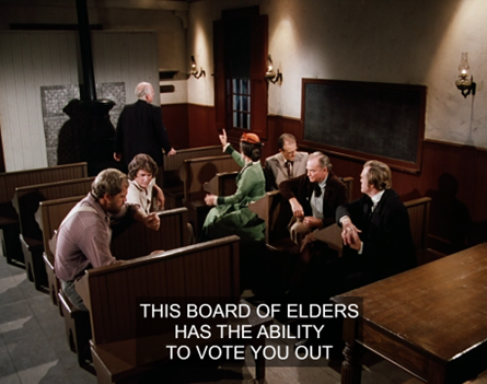 You know, in the time we’ve known her, Mrs. Oleson’s volunteer “leadership” has made life a living hell for the Groveland school board, the church board of elders, the Walnut Grove Women’s League, the Walnut Grove Women’s Temperance League – practically every community initiative in this burg, in fact.
