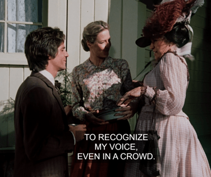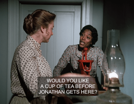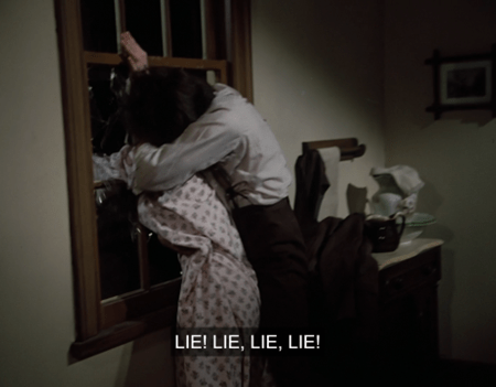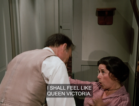 As for Mary and Nellie, no, unless I’m wrong these two have not had a single engagement since sniping at each other on the steps of the school at the start of “‘I’ll Be Waving.'” What’s even stranger – and I mention this towards the end of the recap – is that the Sonnets From the Portuguese scene is the first time Mary and Albert have had an exchange of any significance whatsoever. The closest to date was when he brought her to the pink house.