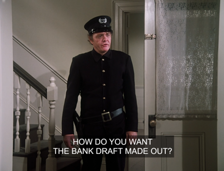 Doc addresses the man as “Harlan,” and the credits give him a last name, “Potts.” He’s played by Gil Lamb, who got to be both Clarabell and Bozo the clown on TV, and who appeared on the The Twilight Zone, Gunsmoke and My Three Sons and in the movies Breakfast at Tiffany’s, Bye Bye Birdie, and The Love Bug.