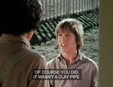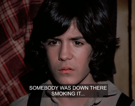 Cousin Charity says the pipe has gone out and needs to be relit. He suggests getting some matches and smoking in the school basement, since everybody’s out at the picnic.