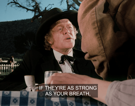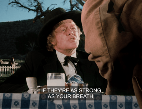 He leans close to show he still has all his teeth, but his breath is so disgusting Doc recoils.