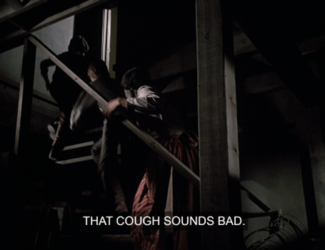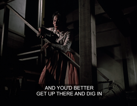 Hester-Sue opens the door up above and asks who’s fooling around down there.
