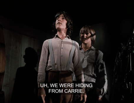They toss the pipe, and Albert says they’re in the basement because they can’t stand Carrie. (Ha! An explanation no one in this town would question.)