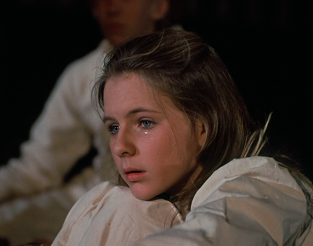 The camera slowly zooms in on Albert staring at her, and the screen goes black. End of Part One.