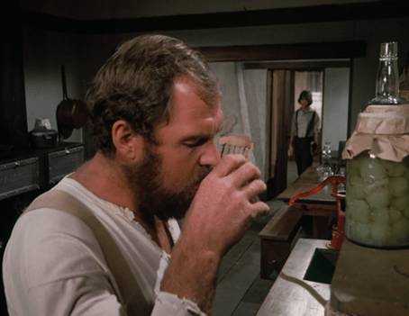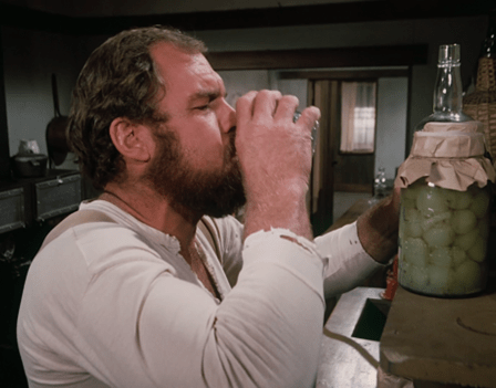 Once he’s gone, Jonathan starts a-poundin’ the booze again. I expect it would take quite a bit to get a guy that size drunk.