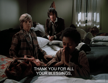 Roscue leads the kids in a prayer where he asks for God’s vengeance against anyone who didn’t donate to the fundraiser, and Adam reproves him.