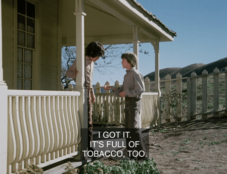 The kid, whose name it turns out is Clay, says only a clay pipe produces a proper smoke. (I find the Clay/clay pipe thing too confusing to keep track of, so I’m just going to call him “Cousin Charity.”)