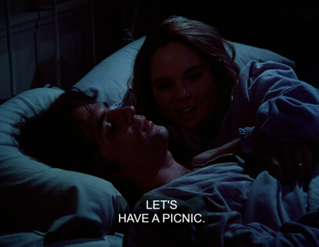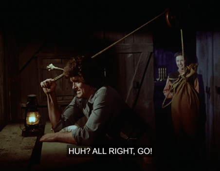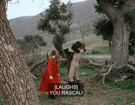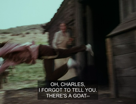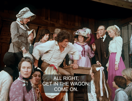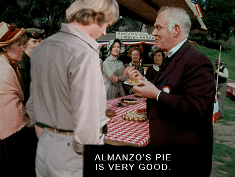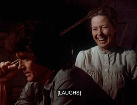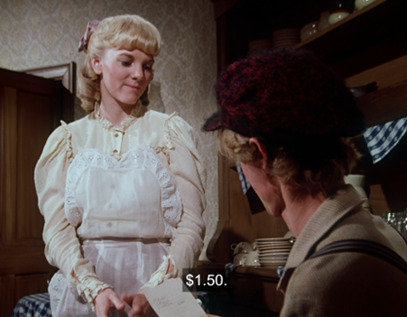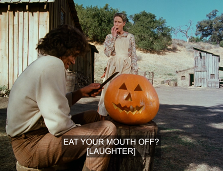 Well, Laura glumly exits as “Laura and Almanzo’s Ooey Gooey Love Theme” (thanks, jtoddward) bubbles up like crude oil on the soundtrack.