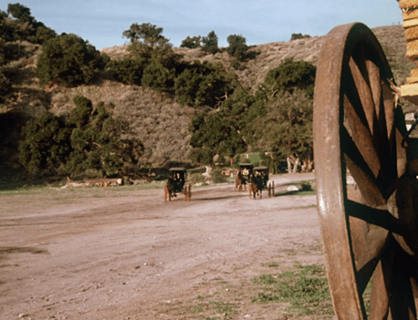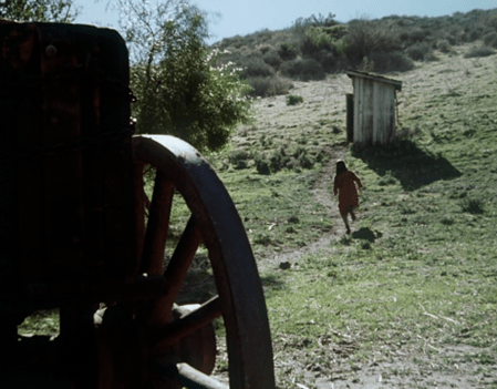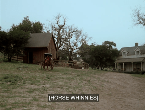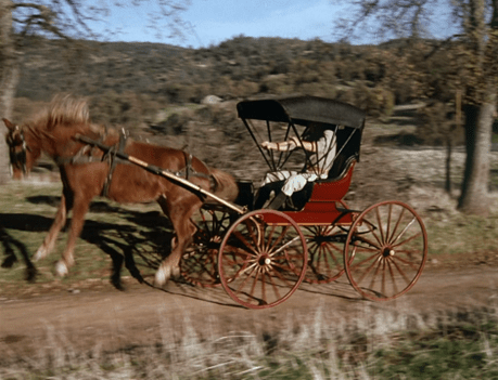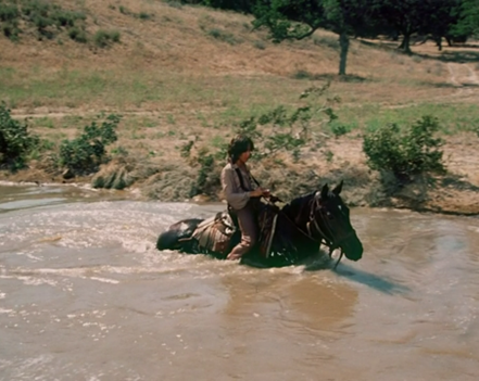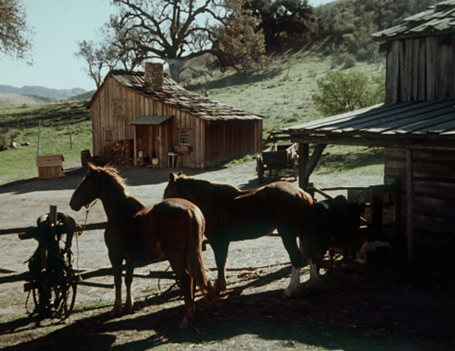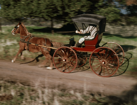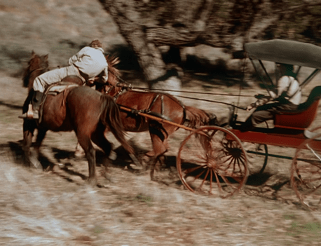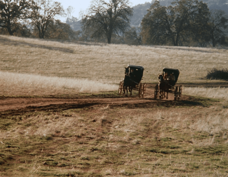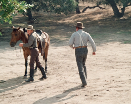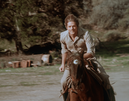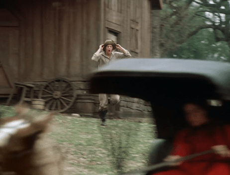 Along comes Almanzo, gaining fast. (I don’t think it’s really Dean Butler doing the riding, but whoever he is, he’s close enough.)