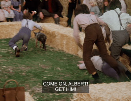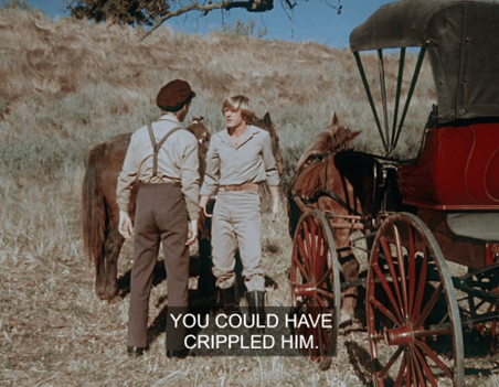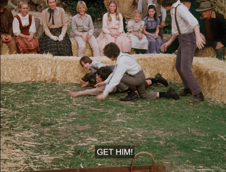 Abandoning the match, mounting a random horse and crying “I’m going to kill Perley Day!”, Almanzo gives chase.