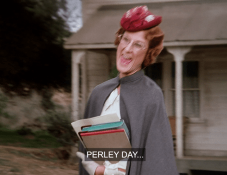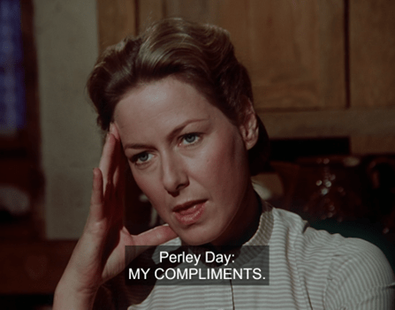 But I suppose maybe it’s not so odd. Since we never saw the Davenports and Tod again after their reconciliation, presumably they all died in some tragedy, and Perley Day picked the outfit up from the bargain bin at the Mercantile. (I’m sure Mrs. O makes the rounds to salvage the clothes of deceased Grovesters and sell them at a very reasonable price.)