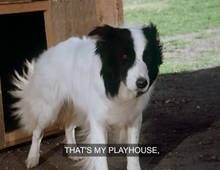 Carrie comes outside and yells that she now has squatter’s rights to the doghouse.
