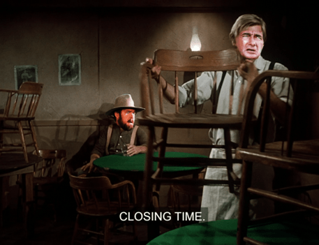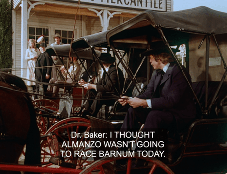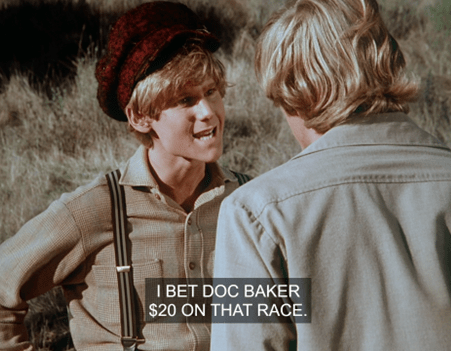 Ignoring this, Perley whines, “I bet Doc Baker twenty dollars on that race!”