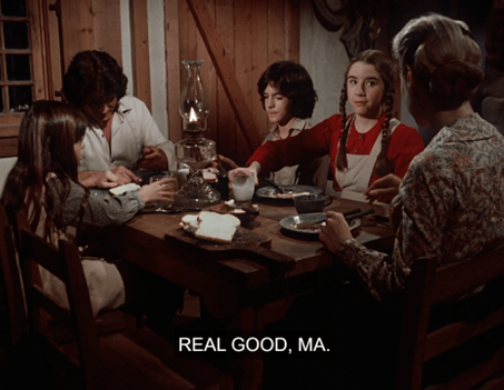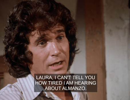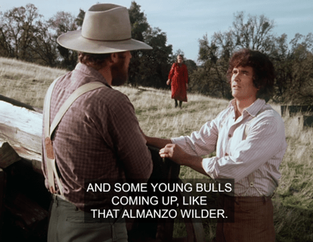 Anyways, Pa interrupts Laura to say he doesn’t give a shit about Almanzo. (A paraphrase, but not much of one.)