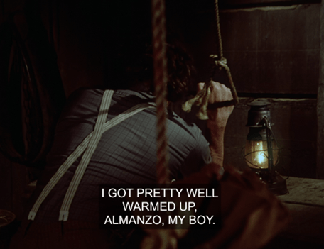 “Manzo” then gives him a furious lecture, and we see P. Day is crying, I guess from the pain?