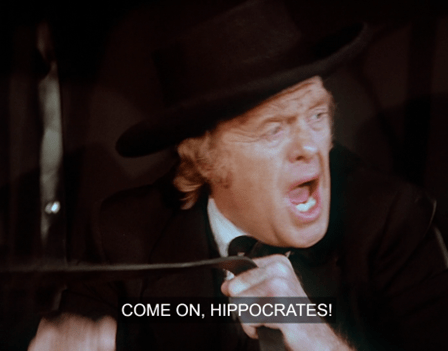 “COME ON, HIPPOCRATES!” Doc screams. See, I said I thought Doc’s horse was named Hippocrates. (Or Hippocampus.)