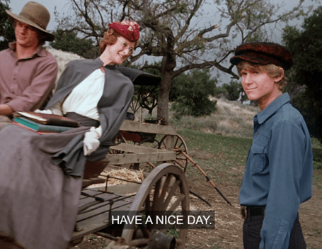 As if that wasn’t obnoxious enough, Pa adds “Have a nice day!” before he departs.