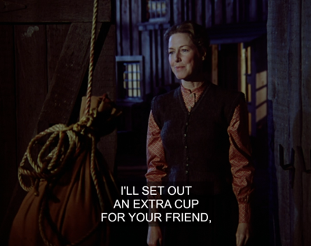 After the young people have gone ahead, Pa puts his arm around Ma and they have a sweet little conversation where he admits he’s starting to feel old.