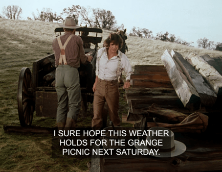 “I sure hope this weather holds for the Grange picnic next Saturday!” Charles says. (They have a shitload of picnics on this show, don’t they? I’m not sure how or why the Hero Township Grange would be sponsoring this one, but whatever, they are.)