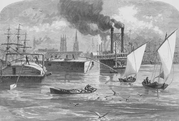 Boats on the Mississippi River, circa 1850 (art by A. Measom, Jr.)