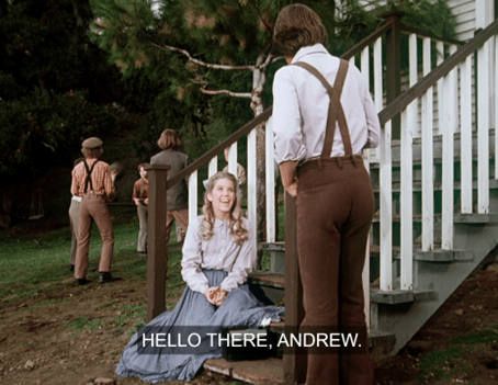 I’m not an expert on the etiquette about mourning during that time period. My parents were immigrants from Sicily, and we had specific customs that made the way death was dealt with here seem odd. Jonathan and Andy as a widower and a child that lost his mom would have mourned at least a year. So they would go to school, work and church but no socializing like parties, or weddings. Mrs X’s daughter Alice died, she would be in mourning for a longer period, so no birthday party. Caroline’s mother died around the time of Baby Adam’s birth. She’d be in mourning as well, she wouldn’t have hosted a picnic when the delinquent kid stole Charles’ watch. And the Ingalls as a whole family just lost a baby grandson, they would have been in mourning. Laura wearing a red dress would have been a scandal! I wouldn’t expect everyone to mourn to that extent. But to put in these really sad episodes, and then act as if nothing happened is weird.