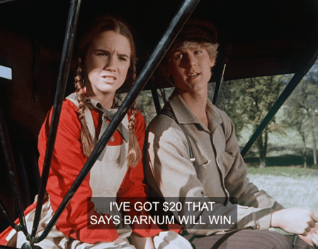 Barnum is apparently a runaway that Almanzo intends to race a week hence, provided he’s able to “break” the horse – in other words, teach it to be accustomed to a rider or driver. (The sources I reviewed suggest breaking a horse usually takes between four weeks and six months. I don’t remember if they covered the topic in Blaze – The Magazine for Horse-Crazy Kids when we had a subscription.)