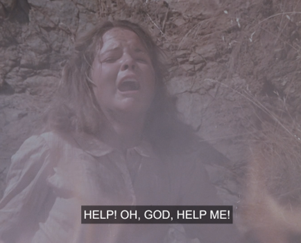 But more than any other character, perhaps, Mary Ingalls is the show. Decent, hardworking, kind, capable, very intelligent, good in a crisis . . . and for some reason worthy of every torture the demons of the writers’ room could think up for her. Bullied, assaulted, attacked by mad dogs, kidnapped at gunpoint (twice), kicked by horses, sawed open on the operating table, cheated on, terrorized by a cult leader, blinded (three times, if you count “Four Eyes” and “The Enchanted Cottage“), made to suffer a miscarriage, nearly raped, forced to endure the screams of her only child as he dies a violent death, and finally pushed to the brink of madness by grief. Little House is positive, wholesome, family entertainment, yes . . . but it is underpinned by a darkness and chaos best embodied by a single figure, who like St. Sebastian is pierced by arrow after arrow and yet lives on: Mary.