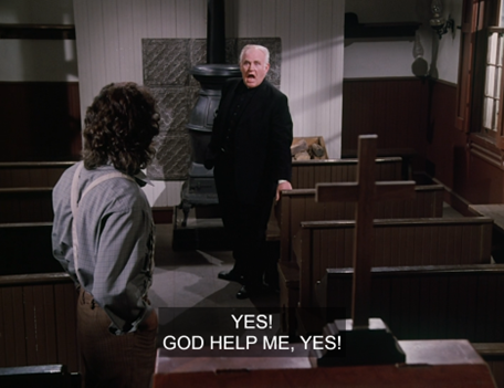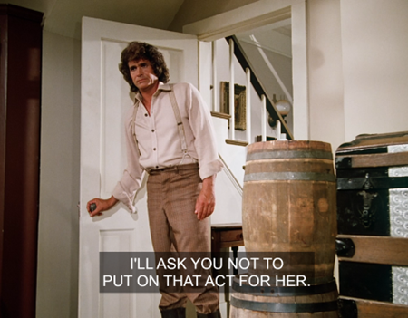 Little House, of course, always serves plenty of ham every year, and not just at Eastertide. This time Landon gets the booby prize for his pompous ranting before a crowd of Rev. Danforth’s faithful.