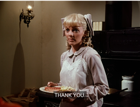 And “Annabelle,” an episode remembered by many as an example of silly late-period Little House plots, we find takes itself quite seriously and achieves exactly what it aims to. Surprisingly believable, it’s anchored by the performances of Harriet Gibson and Richard Bull; but the complexity of Annabelle Oleson, a woman of courage, pain, resilience and wisdom, is first laid out on the page.